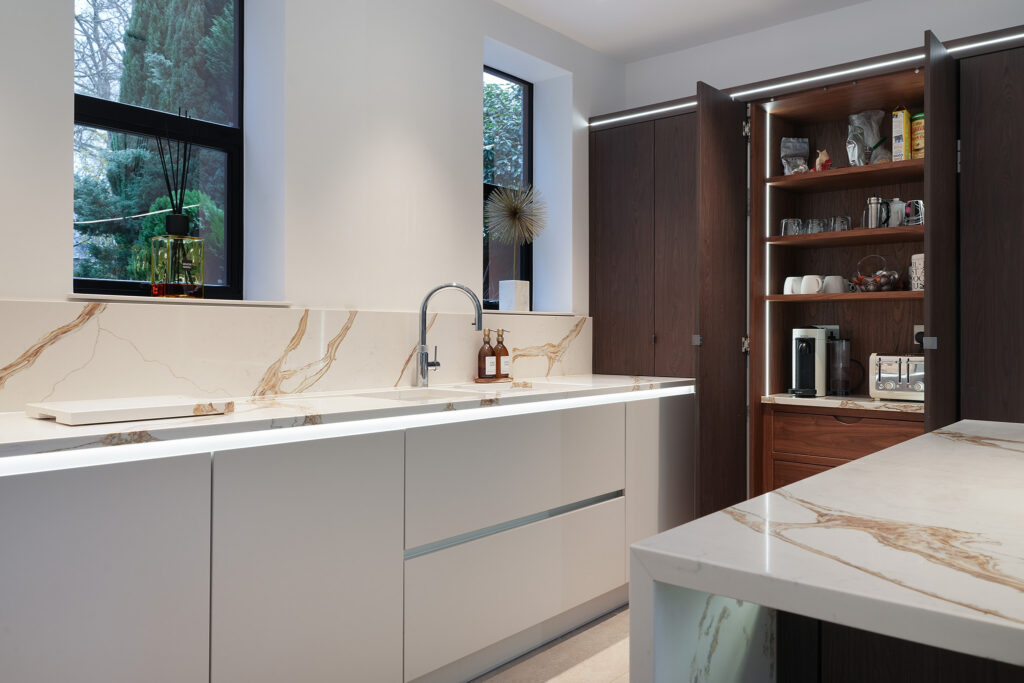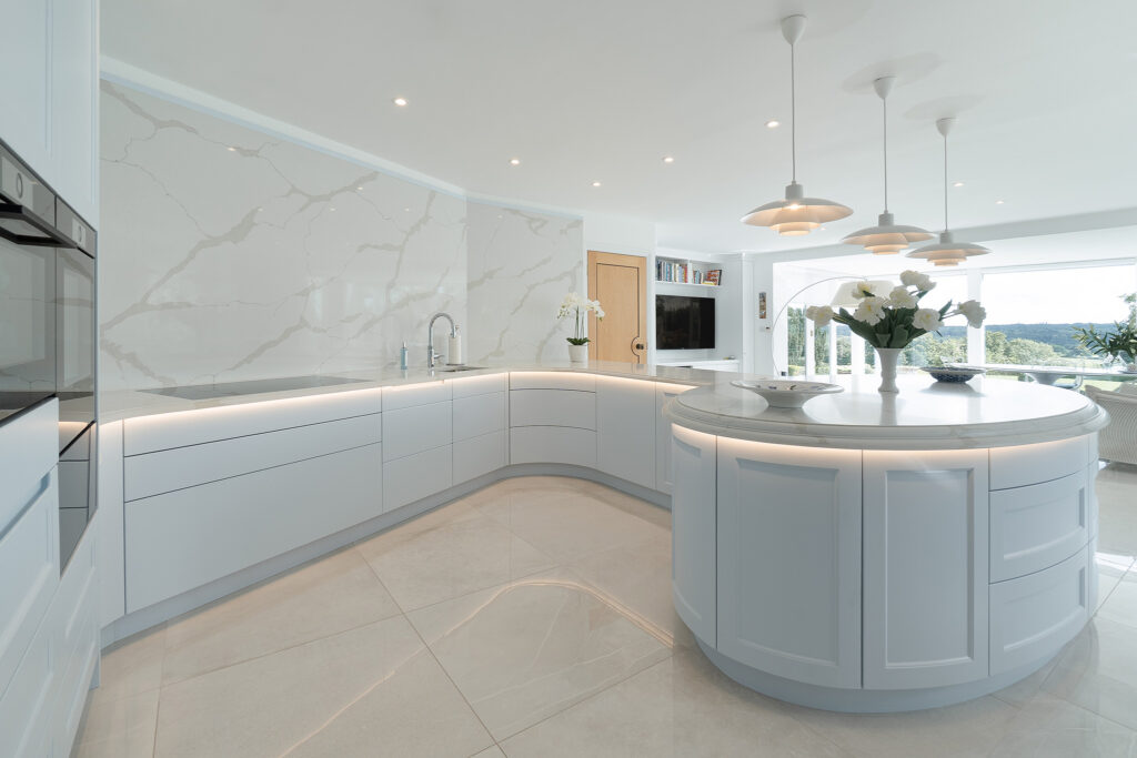 Thinking completely ‘outside the box’, Stoneham has developed their own range of curved units, perfect for islands and the end of runs. Stylish and smooth they are the most desired unit in any Stoneham kitchen be it contemporary or traditional. Their bespoke service allows for special one-off pieces to be created for any space, as well as the finishing touches to personalised engraving on chopping boards and treats drawers.